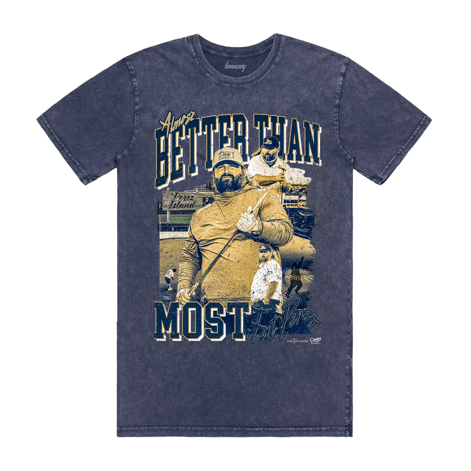 Calling all Fat Perez fans β the limited-edition Almost Better Than Most t-shirt is a sight to behold, and thereβs never been anything quite like it. Featuring the classic stone-washed look and a collage of some of the big guyβs finest moments, this is a must-have for day-one fans.