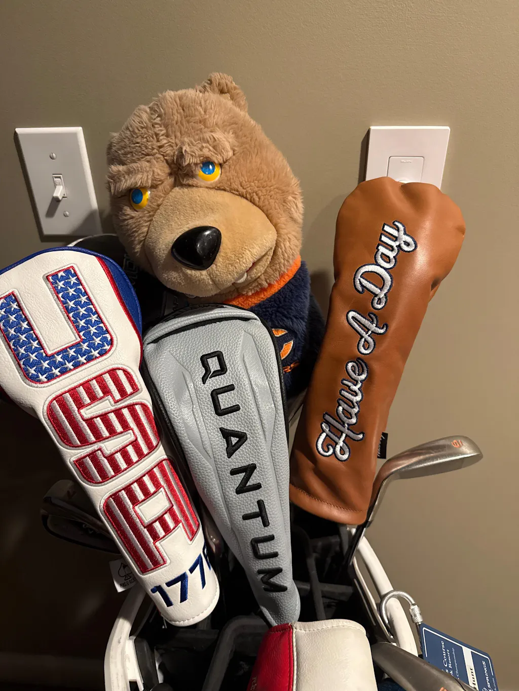 Have a Day with our brand new premium leather Fairway Wood headcover. This is made of genuine leather with a unique distressed look, complete with embroidery from top to bottom so you can let everyone in your group know to Have a Day.